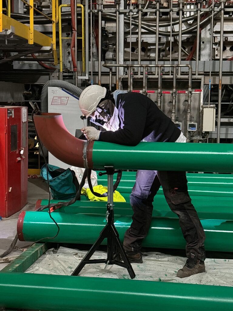 Manutention et préfabrication (soudure) des tubes en acier noir et inox pour l’ensemble de la tuyauterie.